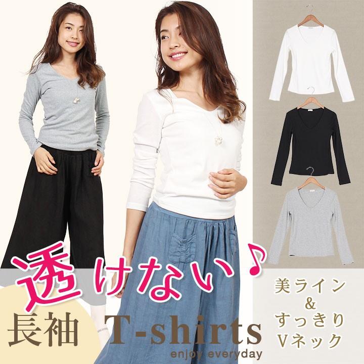 Tシャツ レディース 長袖 春夏 カットソー おしゃれ 透けない 春 Vネック 細見え トップス オフィス きれいめ カジュアル 無地 白 黒 グレー 1277 大人のきれい服 モードアラカルト 通販 Yahoo ショッピング